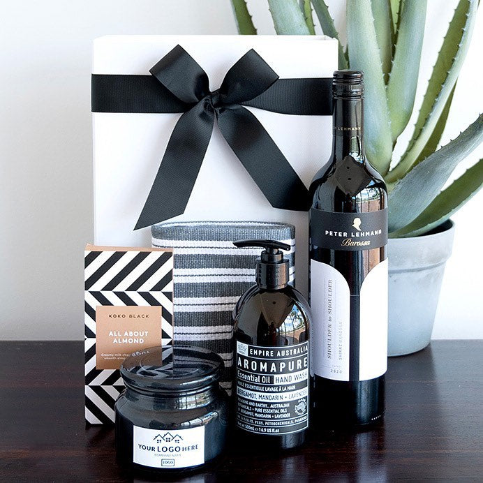 We provide complimentary branding options for all of our gifts. Order 4 or more gifts, and we'll print your logo or message directly onto the lid of the gift box. For orders of less than 4 gifts, we include a custom branded logo or message tag on your gift. Plus, enjoy FREE custom postcards with every purchase.